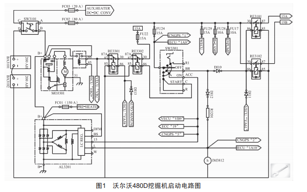 1沃爾沃480D挖掘機(jī)啟動(dòng)電路圖分析