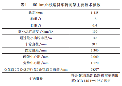 160km/h快運貨車轉(zhuǎn)向架主要技術(shù)參數(shù)如表1所示。