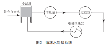 (1)將直流水冷卻系統(tǒng)改為循環(huán)水冷卻系統(tǒng),如圖2所示。在循環(huán)水系統(tǒng)中,冷卻水采用經(jīng)凈化處理的自來水,經(jīng)換熱器后溫度升高,由冷卻塔或其他冷卻設(shè)備將水溫降下來,再由泵將水送到冷卻水管道循環(huán)使用。