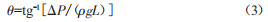 式中,9為U形管對(duì)應(yīng)兩側(cè)的傾斜角:L為U形管對(duì)應(yīng)兩側(cè)的長(zhǎng)度,此長(zhǎng)度安裝后為固定值:h為U形管對(duì)應(yīng)側(cè)高度差。