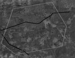 圖1為擬開(kāi)發(fā)風(fēng)電場(chǎng)相對(duì)位置,其中黑線為場(chǎng)區(qū)內(nèi)已建成的高壓輸電線路。同時(shí),場(chǎng)區(qū)內(nèi)有若干居民區(qū),4條等級(jí)公路,1條省管禁用河道,若干墳?zāi)沟取T陲L(fēng)機(jī)排布優(yōu)化過(guò)程中,需要根據(jù)相關(guān)法律法規(guī)、當(dāng)?shù)仫L(fēng)土人情等進(jìn)行合理考慮,規(guī)劃避讓。