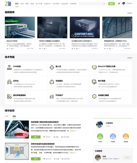 目前Z站尚處于第一期,主要以知識交流互動為定位。社區(qū)可以根據用戶的內容偏好,智能推薦多樣化的相關內容,高品質的問答、博客會被及時置頂,活躍用戶將成為社區(qū)大咖推薦、博主推薦,讓你獲取更多的粉絲關注。致遠電子具備工業(yè)互聯網、高端儀器、云計算等眾多技術領域的優(yōu)厚工程師資源,會及時與用戶一起探討各類技術問題,交流開發(fā)心得。社區(qū)當下為廣大技術工程師提供的功能包括: