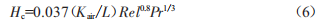式中,Hc為對(duì)流傳熱系數(shù)[w/(m2·K)]。