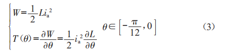 為簡(jiǎn)化轉(zhuǎn)矩?cái)?shù)學(xué)模型的求解過(guò)程,作如下假設(shè):轉(zhuǎn)子沒(méi)有軸向或徑向位移:忽略電機(jī)磁飽和及漏磁:忽略定轉(zhuǎn)子磁阻。設(shè)Na為A相繞組匝數(shù),ia為A相繞組電流,Pa為單個(gè)A相定子齒處的氣隙磁導(dǎo),oa為單個(gè)A相定子齒處的氣隙磁通量,根據(jù)等效磁路法可求得A相繞組的自感系數(shù):