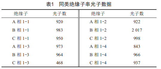 變電站絕緣子串是變電站易放電設(shè)備,通過對(duì)變電站絕緣子串?dāng)?shù)據(jù)進(jìn)行同類分析,在某次檢測(cè)中,獲得的數(shù)據(jù)如表1所示,受篇幅所限僅列出典型數(shù)據(jù)。