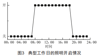 以某陰雨天為例,由于室外光源亮度不足,人工開啟了室內照明,則在一個工作日的開啟時間的實際情況如圖3所示。