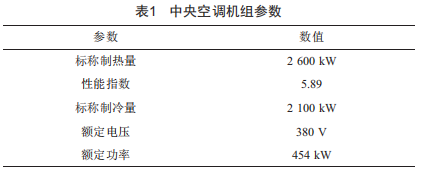 所研究的化工廠地處夏熱冬冷地區(qū),夏季室外空調計算干球溫度為34.8℃,濕球溫度為28.5℃。所采用的空調為中央式統(tǒng)一溫度控制類型的系統(tǒng),夏季制冷、冬季制熱。服務對象為廠區(qū),因此空調溫度按照國家節(jié)能減排的規(guī)定進行統(tǒng)一控制。所研究的化工廠中的空調系統(tǒng)參數(shù)如表1所示。
