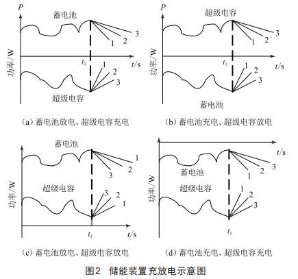 超級電容與蓄電池之間存在能量的交換,但是這一部分交換功率不會補償系統(tǒng)的總功率PHESS,因此需要采取適當?shù)拇胧﹣頊p小儲能裝置間的能量轉移。
