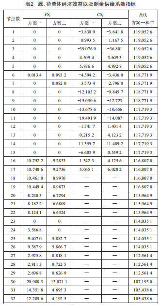 進(jìn)一步地,本文評估了各負(fù)荷、電源單元的經(jīng)濟(jì)效益以及剩余供給系數(shù)指標(biāo),結(jié)果如表2所示。