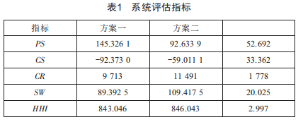 本文首先基于電源經(jīng)濟(jì)效益(Ps)、負(fù)荷經(jīng)濟(jì)效益(Cs)、阻塞管理成本(CR)、系統(tǒng)側(cè)總投資成本(sw)以及HHI指數(shù)評估上述兩種投資方案,結(jié)果如表1所示。