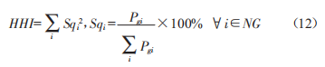 對于電力市場而言,HHI指數(shù)介于0~100之間。HHI指標(biāo)反映了各發(fā)電單元的市場勢力的占比情況,表征了發(fā)電單元的市場集中程度,HHI指數(shù)是典型的市場集中度指標(biāo)。
