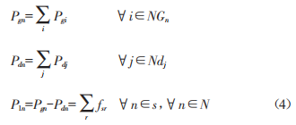 式中,a為邊界電價(jià)(LocationMarginalPrice,LMP),an為節(jié)點(diǎn)n的邊界電價(jià):N為系統(tǒng)節(jié)點(diǎn)總數(shù):Pgn為節(jié)點(diǎn)n的電源輸出功率:Pdn為節(jié)點(diǎn)n的負(fù)荷總功率:Pln為流入節(jié)點(diǎn)n的功率。