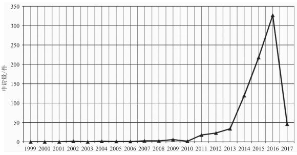圖3是中國電動平衡車專利申請量趨勢圖。國內(nèi)從2002年開始進行電動平衡車的研究,2004一2008年申請量一直很低,2008年,賽格威產(chǎn)品在北京奧運會出現(xiàn),電動平衡車進入國人視野,經(jīng)歷了2008一2013年的摸索和試探期,國內(nèi)申請量經(jīng)歷小幅震蕩上漲,到2014年平衡車廣泛走入國人的生活中。但電動平衡車使用中還有大量問題顯現(xiàn),包括價格、趣味性、安全性、控制方式單一等,這也誘發(fā)了個人和企業(yè)對其進行改進。