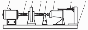 圖1為變速箱換擋性能試驗臺架機械結(jié)構(gòu)示意圖,其主要機械結(jié)構(gòu)包括:變頻電機1、萬向節(jié)2、慣量飛輪3、轉(zhuǎn)速轉(zhuǎn)矩傳感器4、被測試變速箱5、換擋機械手6、安裝平板7。因為各個構(gòu)件的高度存在差異,所以要采用支座使各個部件的中心高度保持為統(tǒng)一的600mm,有效避免因同軸度存在較大差異影響旋轉(zhuǎn)部件的運轉(zhuǎn):使用萬向節(jié)連接各個機械部件,從而降低對同軸度的要求。