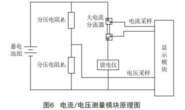 電流/電壓測量模塊實(shí)現(xiàn)對放電過程中的電流、電壓進(jìn)行監(jiān)測和顯示,由數(shù)碼顯示模塊、分流電阻、分壓電阻組成,原理如圖6所示。