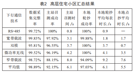 從測試結(jié)果來看,無論采用何種技術(shù),高層住宅小區(qū)低壓集抄的效果都比較好。