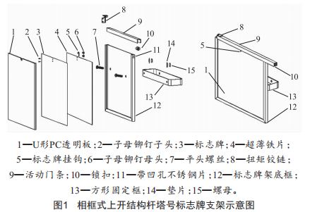 目前在電力系統(tǒng)配電網(wǎng)絡(luò)中,電力架空線路桿塔上的標(biāo)志牌是裸露在外的,長(zhǎng)期承受大風(fēng)、雨淋、日光暴曬以及灰塵的侵蝕,造成大量標(biāo)志牌出現(xiàn)字跡模糊和褪色的現(xiàn)象。此外,標(biāo)志牌材質(zhì)堅(jiān)硬度較差,采用鐵絲、不銹鋼扎帶或螺絲固定,在臺(tái)風(fēng)季節(jié)容易造成標(biāo)志牌松脫、斷裂,給路人、車輛都帶來(lái)了一定的安全隱患,且標(biāo)志牌離帶電設(shè)備較近,只能在線路停電后進(jìn)行更換。
