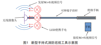 新型手持式消防巡視工具的設計,針對目前滅火器查看工具的實用性進行了技術性改進,有效提高了消防巡視工作的效率,可以滿足對視線不能及且空間比較狹窄、人員不便進入處的查看工作,同時具有對設備狀態(tài)進行拍攝、視頻回傳等功能。