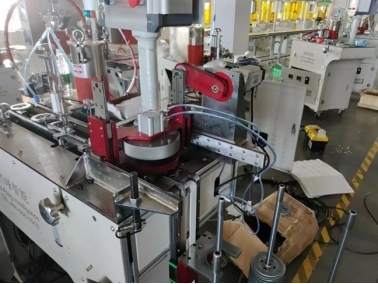 小型點(diǎn)膠機(jī)由轉(zhuǎn)盤尋料、提升上料、機(jī)械手移料、點(diǎn)膠動(dòng)作四部分組成。對(duì)不同規(guī)格型號(hào)的濾芯蓋進(jìn)行點(diǎn)膠。