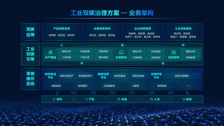工業(yè)通用“雙碳”引擎圍繞原料碳標簽、產(chǎn)品碳足跡、設(shè)備碳感知、能源碳優(yōu)化、企業(yè)碳管理、政企碳服務(wù)等六大應(yīng)用場景,在零碳智慧操作系統(tǒng)的基礎(chǔ)上構(gòu)建“雙碳”引擎,通過產(chǎn)品雙碳追溯、設(shè)備雙碳感知、企業(yè)雙碳管理、工業(yè)雙碳服務(wù)等四大模塊構(gòu)建工業(yè)企業(yè)全方位、全周期、全流程的碳管理平臺。