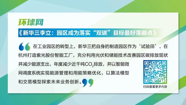 作為零碳智慧園區(qū)概念的先行者,新華三集團自身也是零碳轉型的“試驗場”。環(huán)球網(wǎng)在報道中重點關注了紫光股份智能工廠的前沿實踐,工廠利用光伏和儲能技術每年減排近千噸,節(jié)約近百萬元,并以智能微網(wǎng)調(diào)度系統(tǒng)實現(xiàn)了能源管理和用能策略優(yōu)化,以算法模型和交易模型探索未來業(yè)務創(chuàng)新。