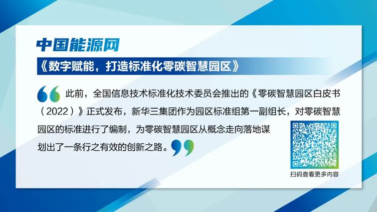 通過成功經(jīng)驗的總結和積淀,新華三集團為零碳智慧園區(qū)的建設提供了完整的解決方案。中國能源網(wǎng)表示,目前,與零碳智慧園區(qū)相關的技術壁壘已經(jīng)消除,但政策標準還存在較多空白。新華三對零碳智慧園區(qū)的標準進行了編制,進一步明確了零碳智慧園區(qū)愿景和建設思路,為零碳智慧園區(qū)從概念走向落地謀劃出了一條行之有效的創(chuàng)新之路。