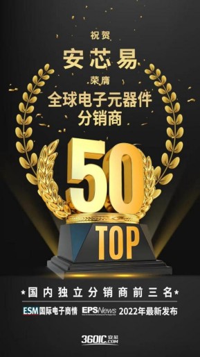 2022年5月13日,行業(yè)權(quán)威媒體《國際電子商情》與ESPNews 聯(lián)合發(fā)布了2021年度全球電子元器件分銷商營收全球TOP50排名榜。