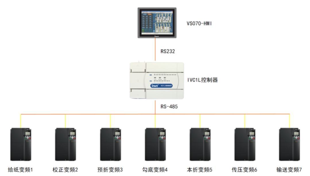 4、大幅降低硬件成本與維護(hù)成本。在硬件上,控制器、觸摸屏、變頻器、伺服全部實(shí)現(xiàn)國(guó)產(chǎn)替代,成套電控系統(tǒng)成本至少下降20%。整套系統(tǒng)的變頻器通過(guò)RS485通訊,由上位PLC給定頻率,減少了大量模擬量模塊、簡(jiǎn)化了現(xiàn)場(chǎng)布線,降低系統(tǒng)硬件成本,也減少了后期維護(hù)成本。