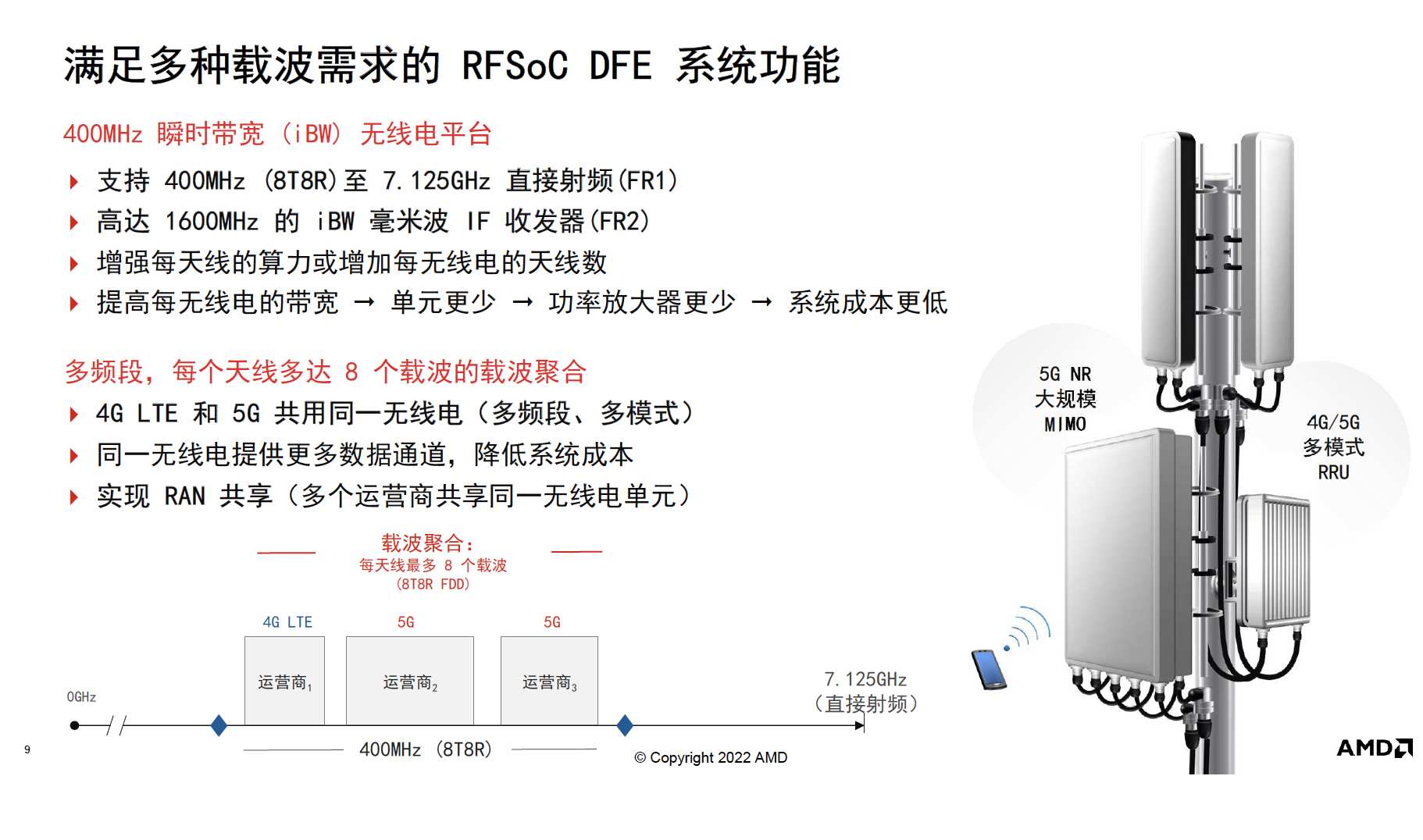 RFSoC DFE是AMD與Meta合作在Evenstar項(xiàng)目中的重要無(wú)線電解決方案,致力于推進(jìn)O-RAN的無(wú)線電應(yīng)用開(kāi)發(fā)。但其實(shí)除了Meta這種超大規(guī)模數(shù)據(jù)中心外,AMD也有其他無(wú)線電廠商合作密切。據(jù)悉90%的O-RAN中相關(guān)無(wú)線電部分來(lái)自于AMD的技術(shù)。而RFSoC DFE也支持除了O-RAN之外的像虛擬RAN、云RAN的基礎(chǔ)設(shè)施部署。