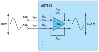 圖3.AD7606內(nèi)部PGA。僅以±10 V范圍為例