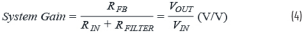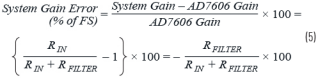 但是,在PGA前面增加一個串聯(lián)電阻(我們將其稱為RFILTER)時,增益會改變(偏離理想值)。這個電阻實際上是改變了公式3中的分母;所以,系統(tǒng)增益會低于其調(diào)整增益。