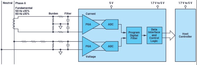 圖1.電源監(jiān)控應(yīng)用中的典型信號鏈。為簡潔起見,僅顯示一個相位