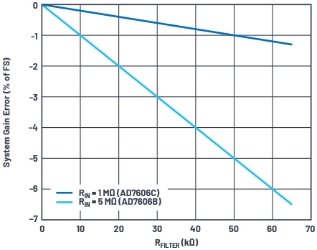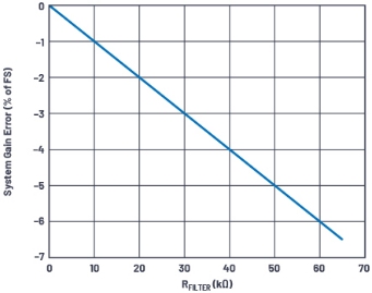 圖6.系統(tǒng)增益誤差(FS的%),與AD7606中的外部RFILTER電阻(1 MΩ輸入阻抗)呈函數(shù)關(guān)系