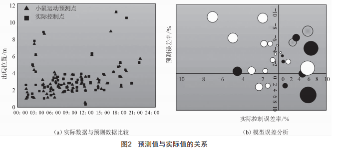 由圖2可知,12:00的誤差最大,預(yù)測(cè)出現(xiàn)誤差均值為8.23%,實(shí)際控制誤差為6.96%:24:00的誤差最小,預(yù)測(cè)出現(xiàn)誤差均值為6.76%,實(shí)際控制誤差為6.24%。整體來(lái)說(shuō),小動(dòng)物移動(dòng)監(jiān)測(cè)的誤差范圍處于0%~0.3%,無(wú)明顯的類(lèi)型差異。因此,仿真數(shù)值與實(shí)際數(shù)值之間基本一致,本文所述系統(tǒng)預(yù)測(cè)有效。
