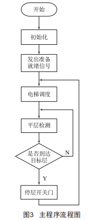 主程序流程圖如圖3所示,電梯啟動,開始檢測自動運行信號,然后開始初始化,初始化過程中電梯全程低速,初始化結束后發(fā)出準備就緒信號,開始執(zhí)行基于模糊控制理論的電梯調(diào)度算法。接下來進行平層檢測,然后看電梯是否到達目標樓層,若沒有則繼續(xù)進行平層檢測,若有則進行電梯停層開關門。