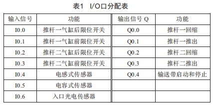 在進行PLC程序編寫之前,要將對應(yīng)的I/0口分配好,信號和接口要一一對應(yīng)好。根據(jù)系統(tǒng)設(shè)計需要,將輸入和輸出接口分配如表1所示。