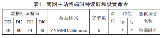 本系統(tǒng)使用南網(wǎng)主站已有終端時(shí)鐘讀取和設(shè)置命令,如表1所示。