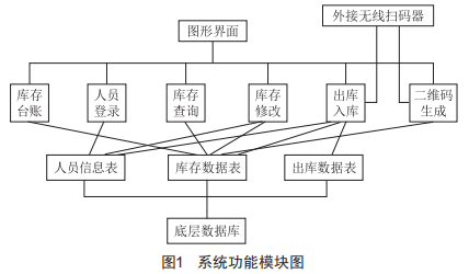 為達(dá)到便于維護(hù)、便于操作的目的,提高使用效率,本系統(tǒng)采用模塊化的架構(gòu)設(shè)計,主要包括電能表庫存臺賬管理模塊、人員登錄和信息校驗?zāi)K、庫存查詢模塊、庫存修改模塊、出庫入庫模塊、二維碼生成模塊,如圖1所示。