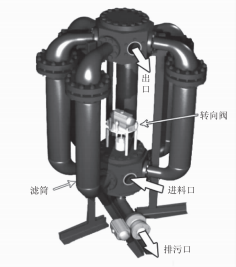 反沖洗時(shí),過濾器底部轉(zhuǎn)向閥執(zhí)行機(jī)構(gòu)旋轉(zhuǎn),將閥芯對(duì)準(zhǔn)6個(gè)濾筒中其中一個(gè),此時(shí)該濾筒不再進(jìn)行過濾工作,而轉(zhuǎn)入反沖洗工作:下部排污閥會(huì)打開,出口收集腔和排污管口產(chǎn)生壓差,使部分出口收集腔的濾液通過該濾筒逆向流動(dòng):濾液從濾芯內(nèi)流出,把濾網(wǎng)外的雜質(zhì)沖出排污口進(jìn)入反沖洗油罐:然后排污閥關(guān)閉,將轉(zhuǎn)向閥旋轉(zhuǎn)至下個(gè)濾筒,周而復(fù)始直到8組過濾器全部沖洗完畢。