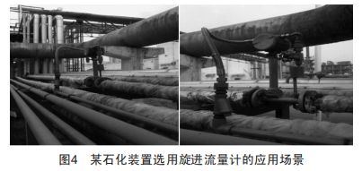 某石化裝置選用旋進(jìn)流量計解決了直管段不足等流場問題,如圖4所示。