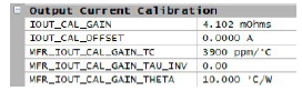 使用阻性分流器時,將MFR_IOUT_CAL_GAIN_TC值設(shè)置為制造商的規(guī)格以補(bǔ)償溫度變化。通常,大于10 mΩ的分流器具有較低的溫度系數(shù):<100 ppm/°C。