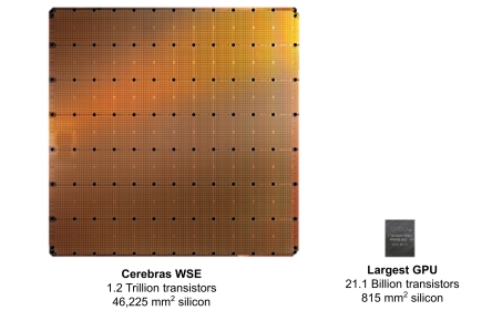 在人工智能和機(jī)器學(xué)習(xí)應(yīng)用數(shù)據(jù)處理的強(qiáng)勁需求下,大規(guī)模并行計(jì)算迅速興起,導(dǎo)致芯片復(fù)雜性呈現(xiàn)爆炸式增長(zhǎng)。這種復(fù)雜性體現(xiàn)在 Cerebras 晶圓級(jí)引擎(如下圖)等設(shè)計(jì)中,該設(shè)計(jì)是一種平鋪多核、多晶片設(shè)計(jì),將晶體管數(shù)量增加至數(shù)萬(wàn)億個(gè),擁有近百萬(wàn)個(gè)計(jì)算內(nèi)核。