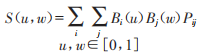Berzier曲面的s(u,w)是控制特征網(wǎng)絡(luò)的大致形狀的函數(shù),P(u,w)是逼近特征的網(wǎng)格多面體的數(shù)學(xué)模型,控制頂點(diǎn)Pij(i=0,1,1,3,…,n)分別沿著u和w方向構(gòu)成m+1和n+1個(gè)控制多邊形,一起組成曲面的特征多面體或控制特征網(wǎng)絡(luò),參數(shù)方程為: