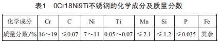 本文所用的實驗材料0Cr18Ni9Ti奧氏體不銹鋼尺寸為長30mm、寬10mm、高3mm。實驗材料的化學(xué)組成成分以及各自所占質(zhì)量分?jǐn)?shù)如表1所示。