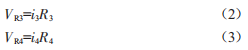 根據(jù)運算放大器原理,R3與R4兩端的電位相等,由式(2)、式(3)可得: