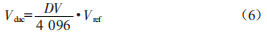 其中,Dv是處理器DAC模塊的輸入量,根據(jù)當(dāng)前外圍傳感器(如溫度傳感器、壓力傳感器等)輸出的數(shù)字量確定,范圍為0~4096(假設(shè)微處理器DA為12位精度)。vref是DA模塊的參考電壓,在本設(shè)計中為滿足低成本需求,實際就是vreg。
