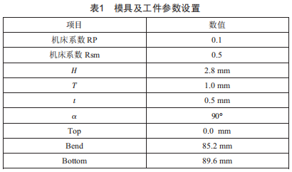 按照設(shè)計(jì)的方案,采用折床小松PAs5020與機(jī)器人FANUC-R2000ic/165F,工件展開尺寸為1052.8mm×993.8mm×1.0mm,折彎角度為90a,折彎尺寸為(9.0±0.25)mm、(15.0±0.25)mm、(21.0士0.25)mm,使用上模為GZJ3090、下模為GV59060進(jìn)行方案驗(yàn)證。機(jī)器人運(yùn)行的點(diǎn)位通過人工校對完成,模具及工件參數(shù)設(shè)置如表1所示。