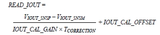 設(shè)置IOUT_CAL_GAIN = RSNS × (R2 / R1)