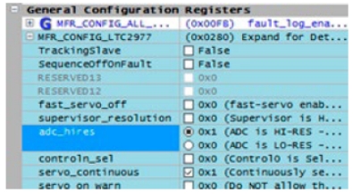在這種模式下,此通道提供的唯一功能就是遙測回讀電流。設(shè)置adc_hires位會禁用VOUT_EN引腳,并禁用所有故障響應(yīng)。本質(zhì)上,對于LTC2977,它會強制通道進入“關(guān)閉”狀態(tài),并且它僅回讀檢測元件兩端的電壓(mV)。