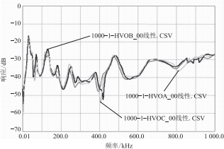 (2)中頻段(100~600kHz)能靈敏地反映出繞組分布電感、電容的變化,因?yàn)樵诖祟l段內(nèi),曲線有較多的波峰、波谷。該頻段主要反映繞組可能存在的扭曲和鼓包等局部變形現(xiàn)象。